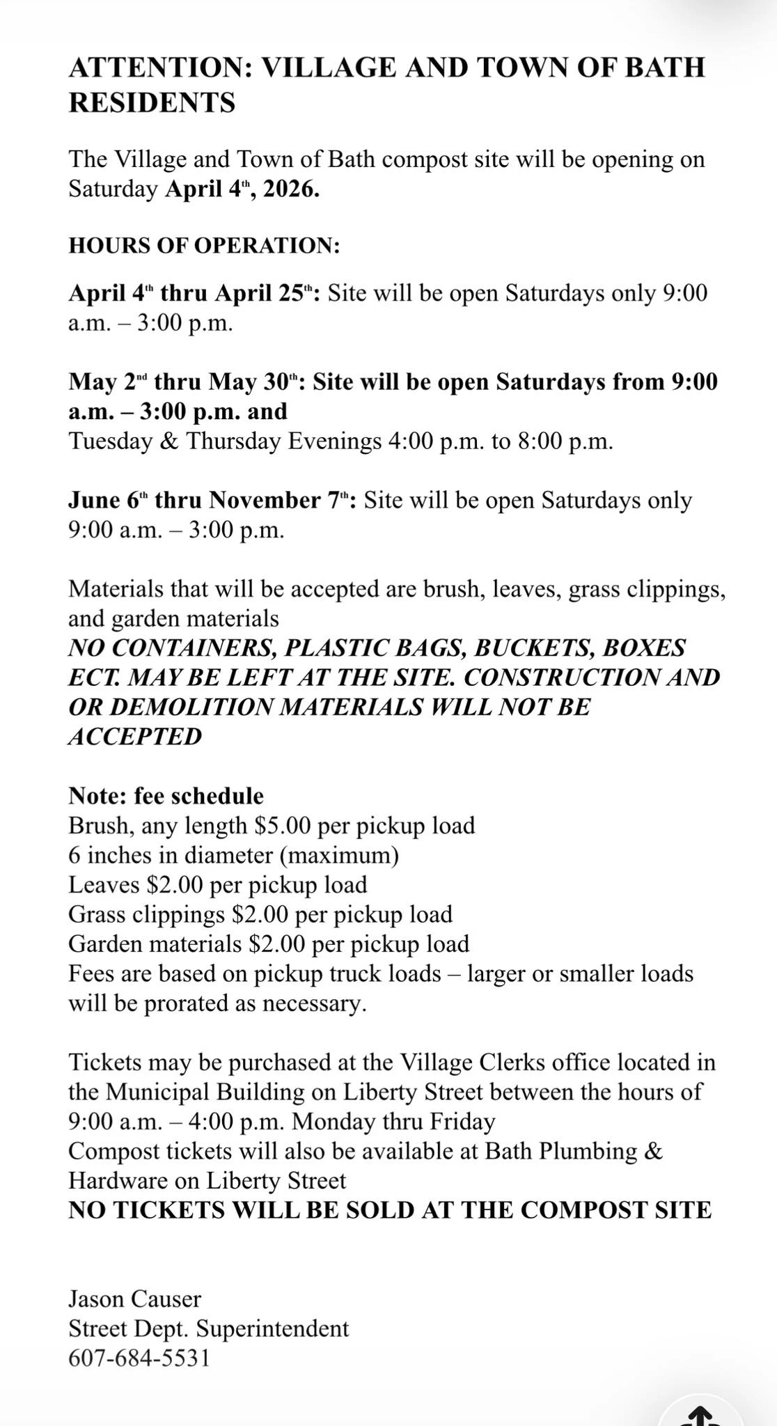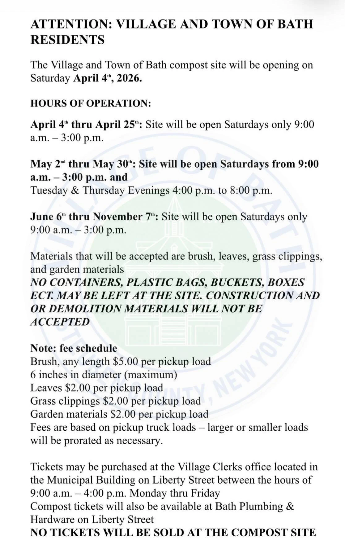Bath Compost Site Hours For The Rest of The Year