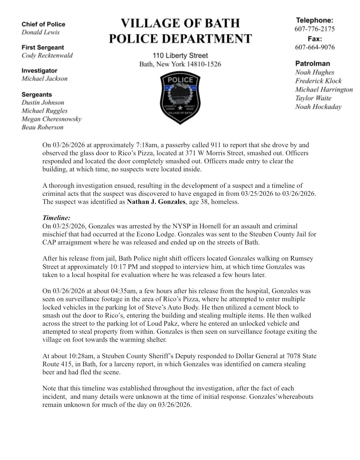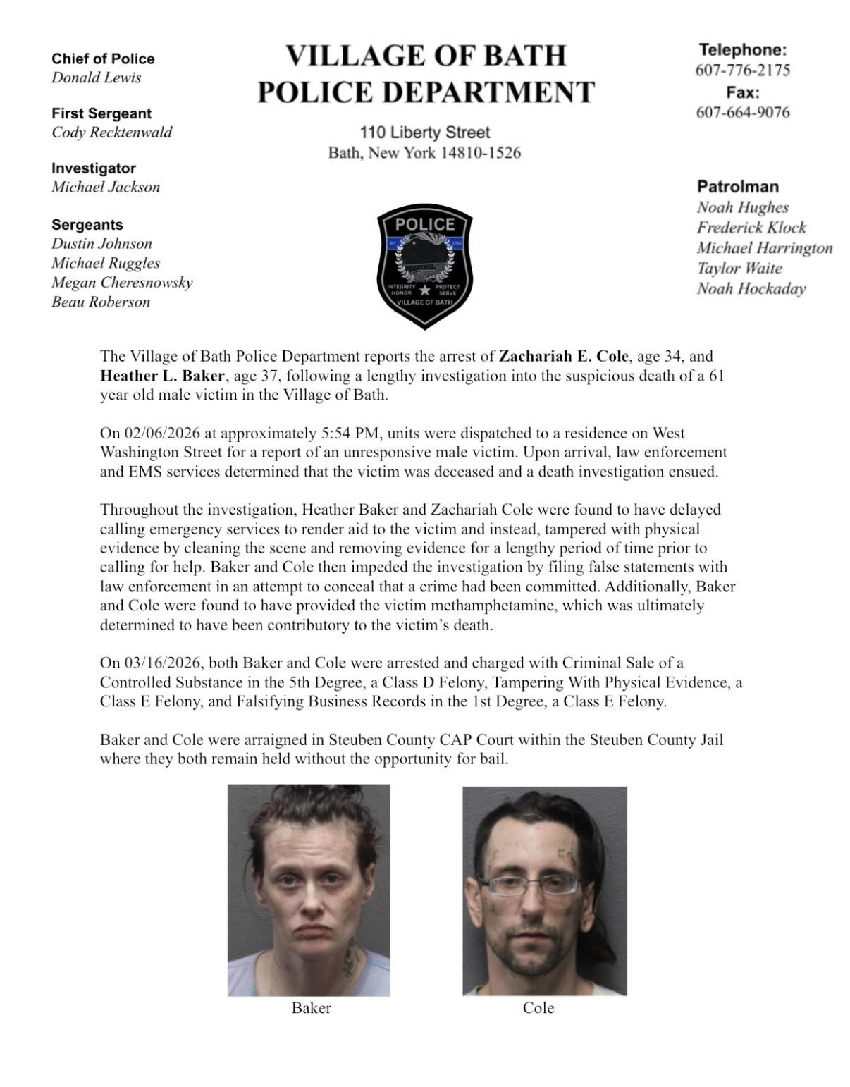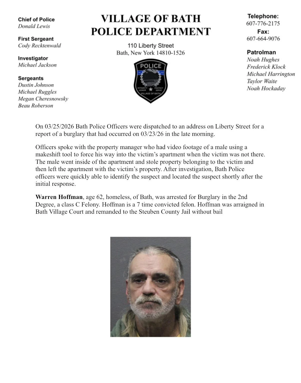 Steuben County District Attorney Brooks Baker tells our news department that Arthur Gilbert of Bath, pleaded guilty yesterday, to Reckless Endangerment in the First Degree in Steuben County Court. D.A. Brooks Baker says the allegations were that on February 2, Gilbert and his girl-friend allegedly created a grave risk of death to their eight year old daughter. That was reportedly what happened at a West Washington Street apartment in the Village of Bath. Officials say that eight year old is deaf, blind and requires a wheelchair and feeding tube. Gilbert will be sentenced in June and has lost custody of his eight year old and another child as well.