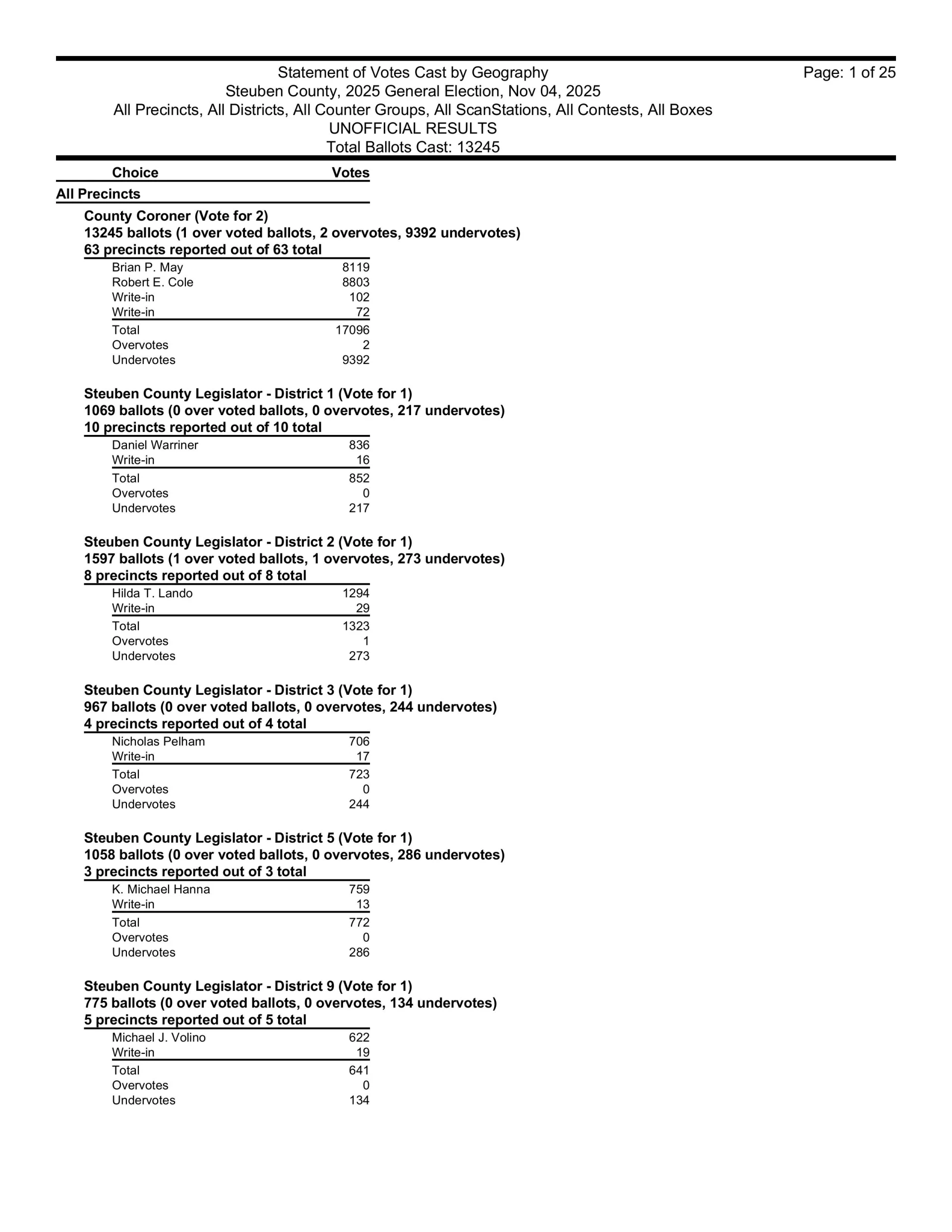 Steuben County Election Results From Last Night