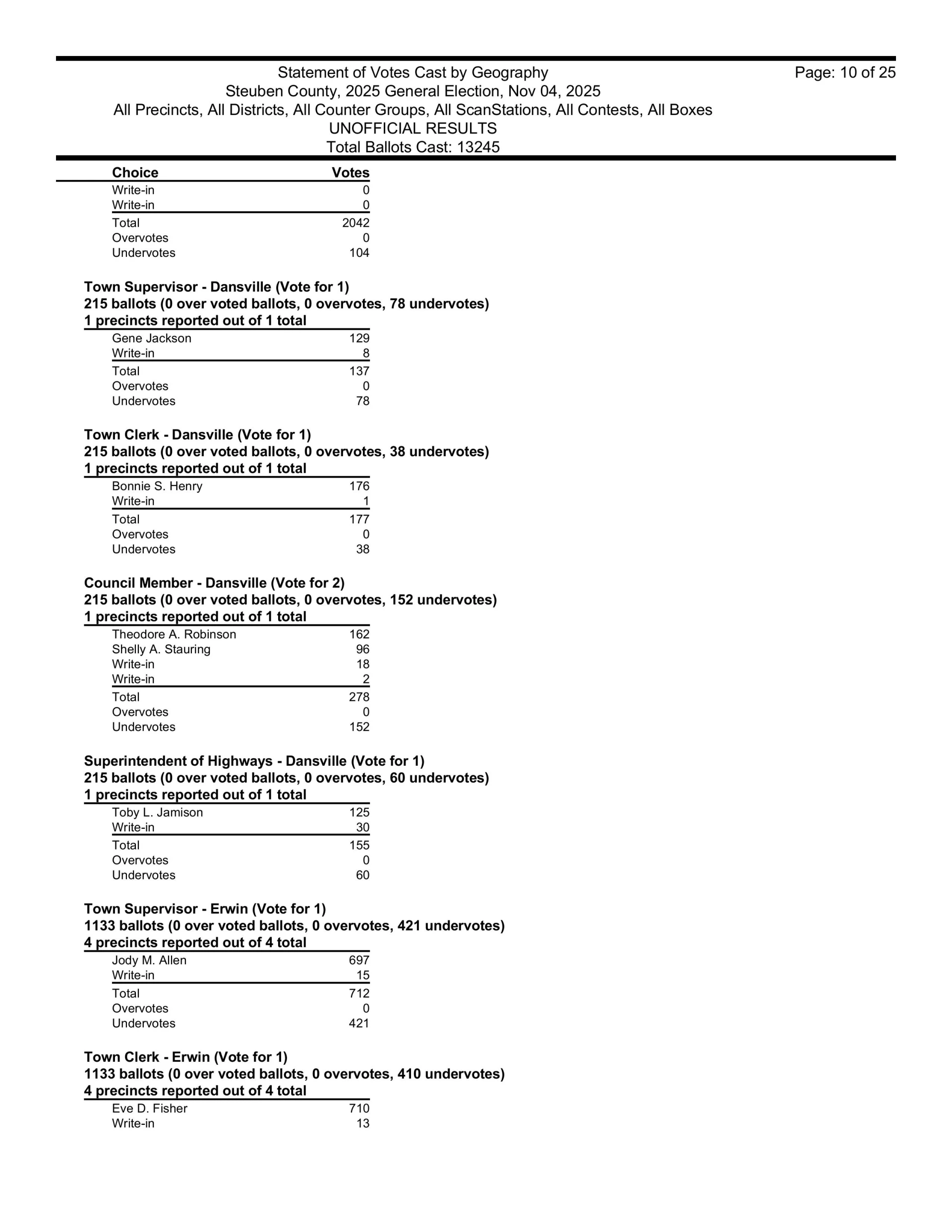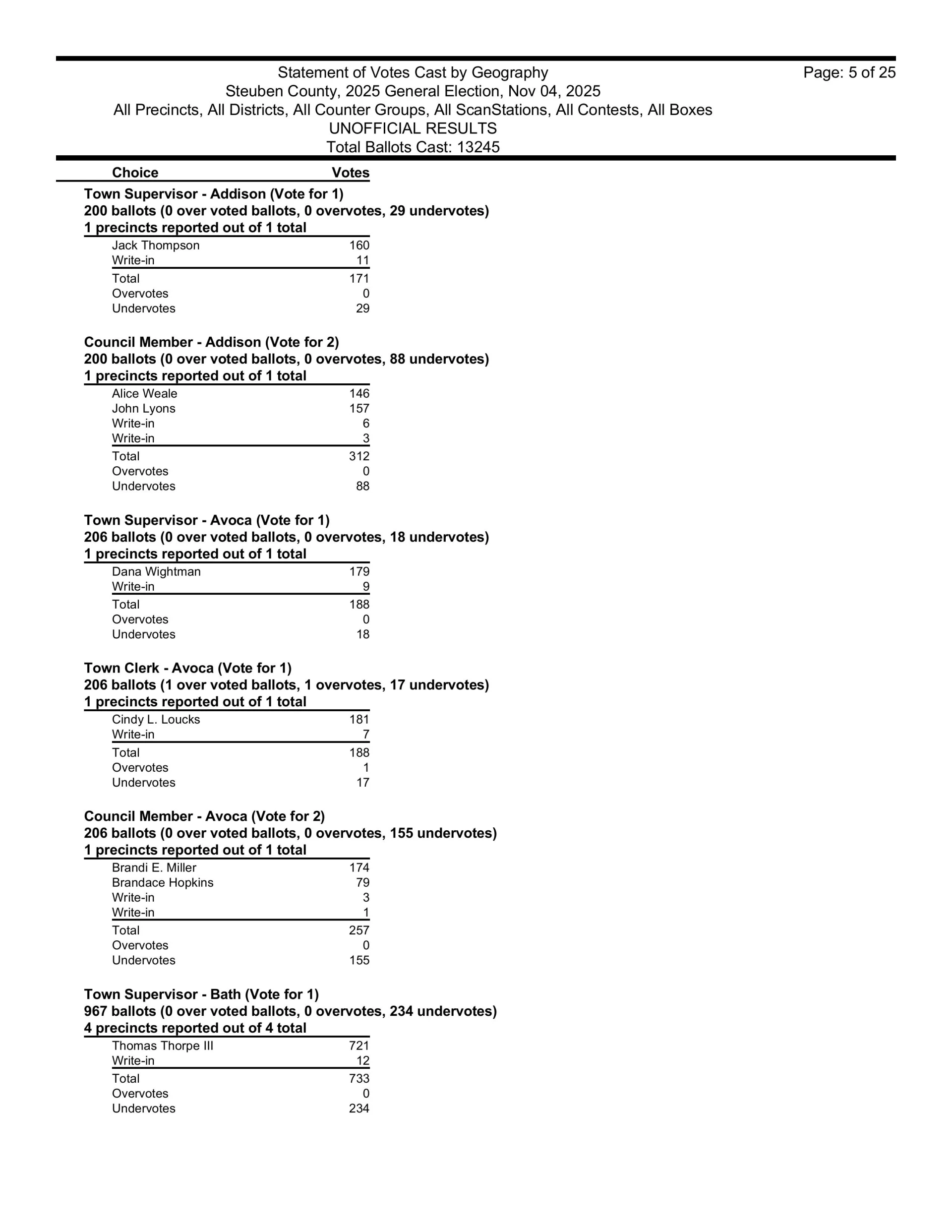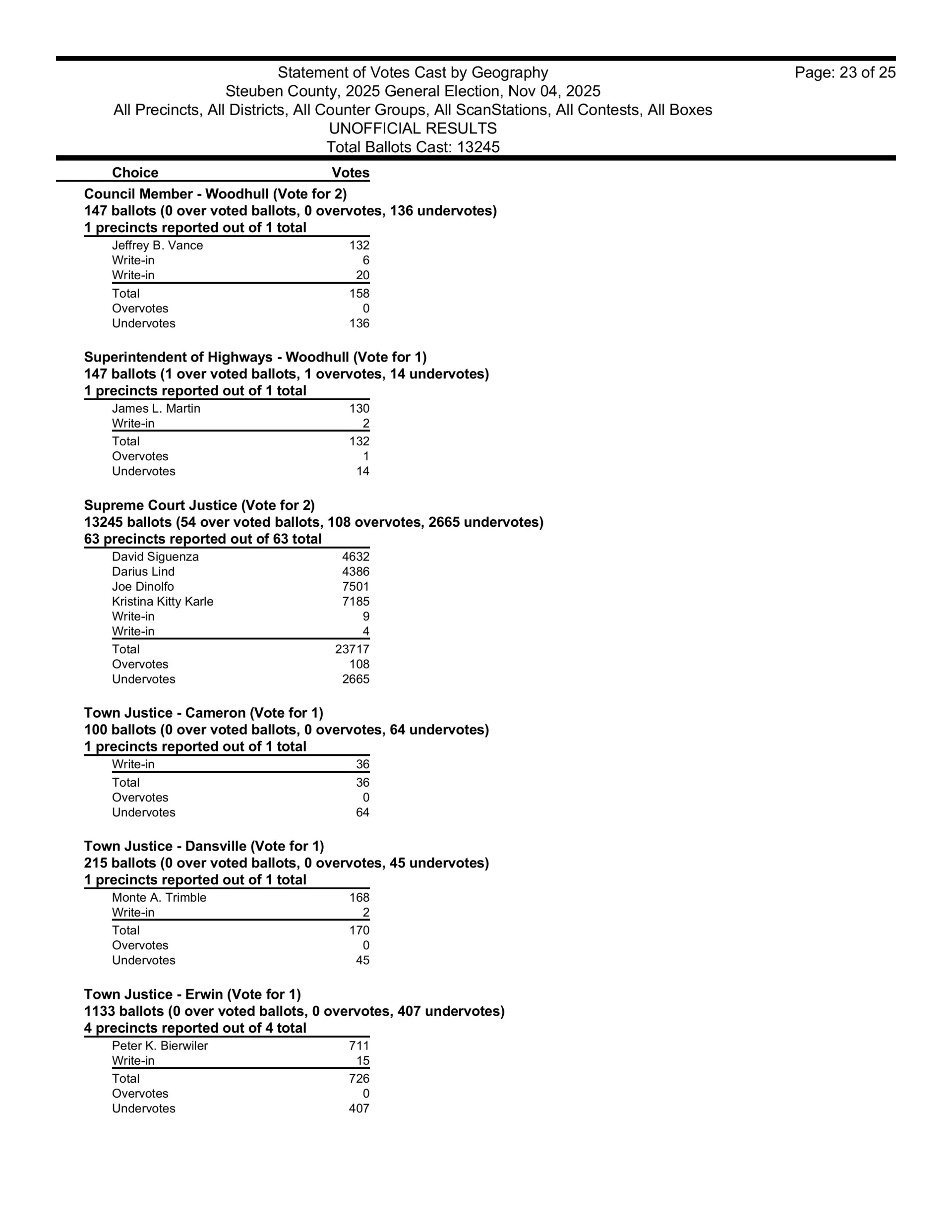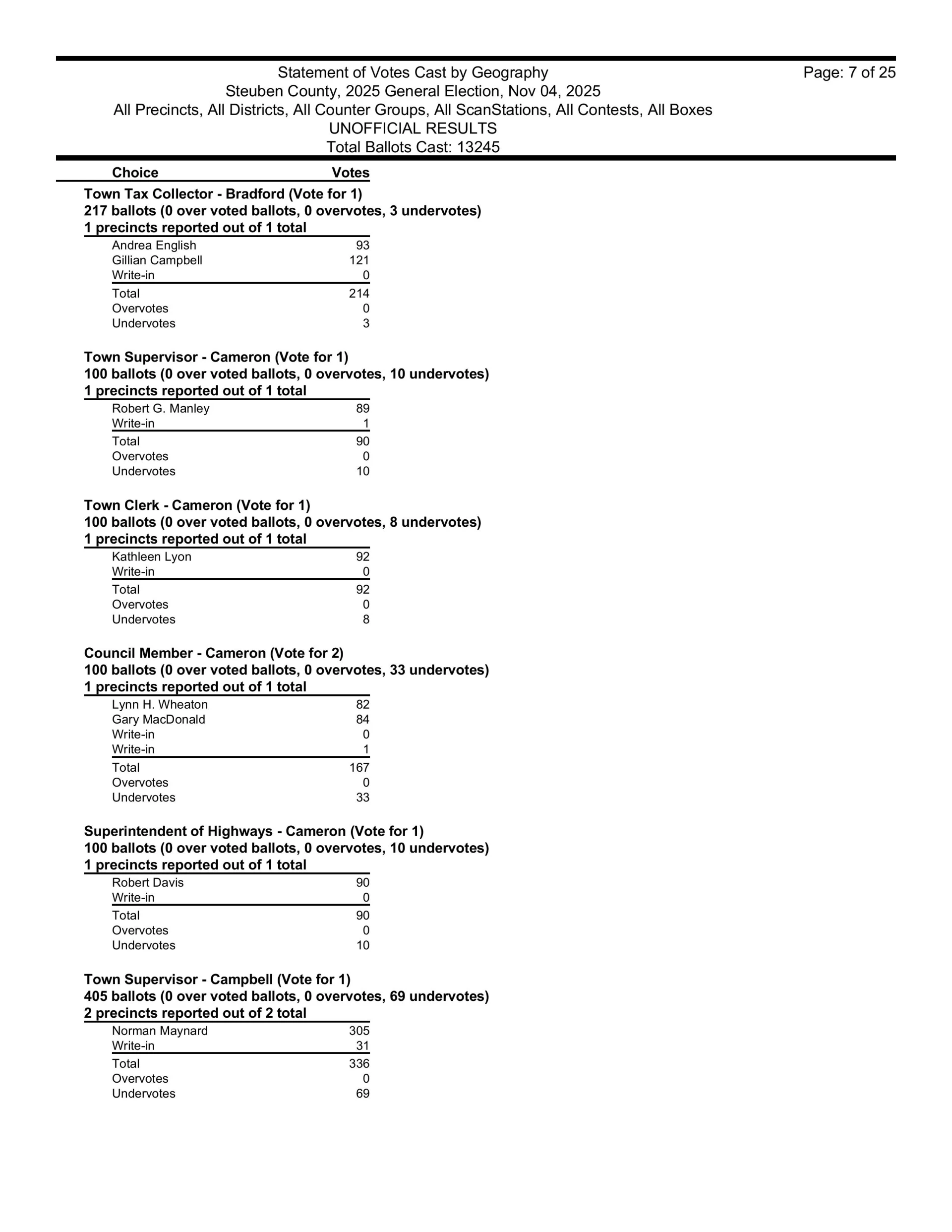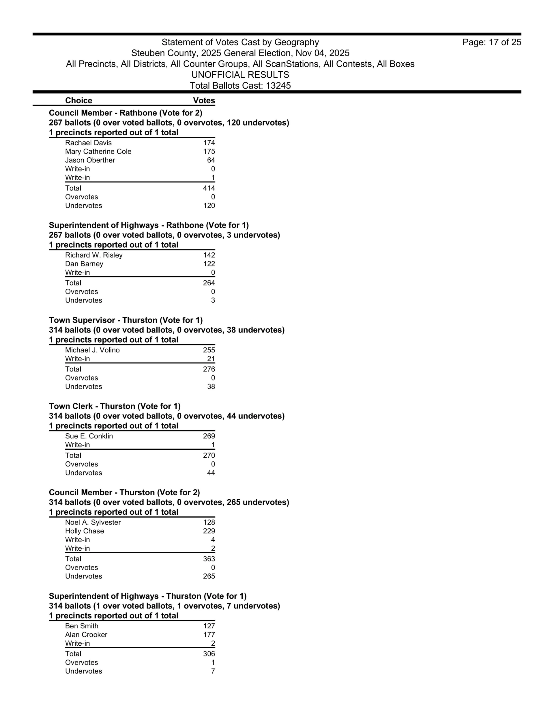 There are also races in Campbell, Caton, Cohocton, Corning, Howard, Erwin, Lindley, Wayne, Woodhull, Prattsburgh, Pulteney, Wheeler, Rathbone and Thurston.  Then, there are county legislative races in Bath, Prattsburgh, Pulteney, Urbana, Erwin, the Town of Corning, Caton and Hornby.