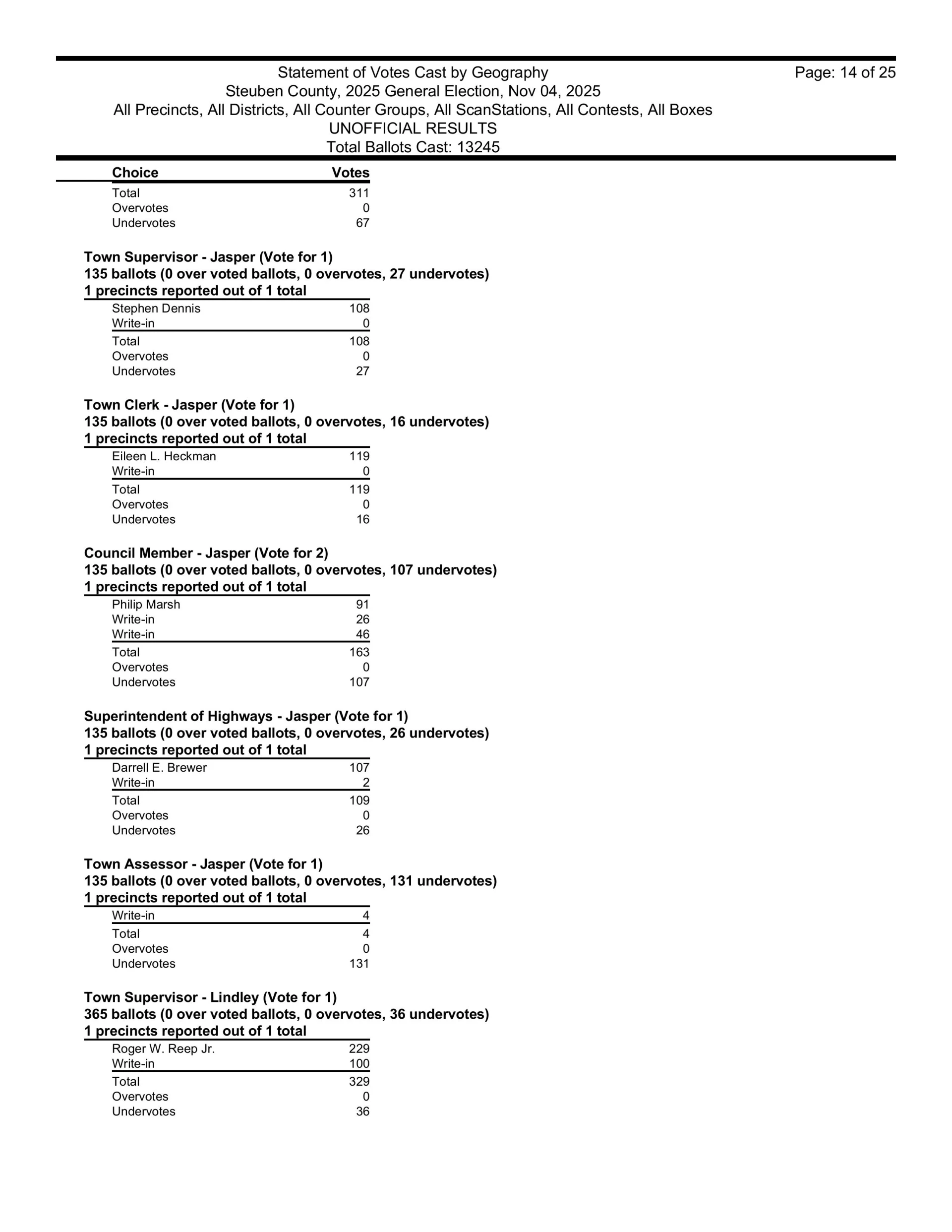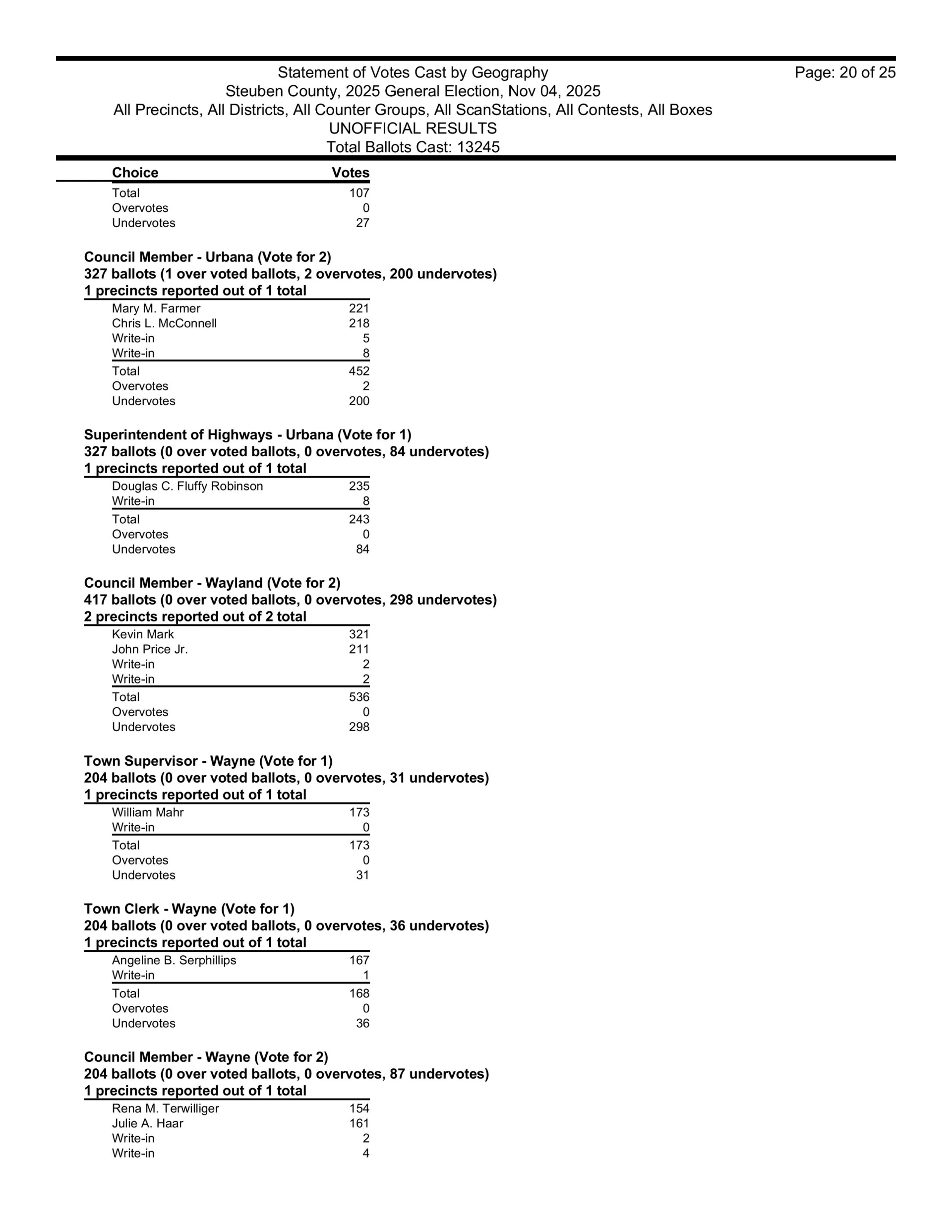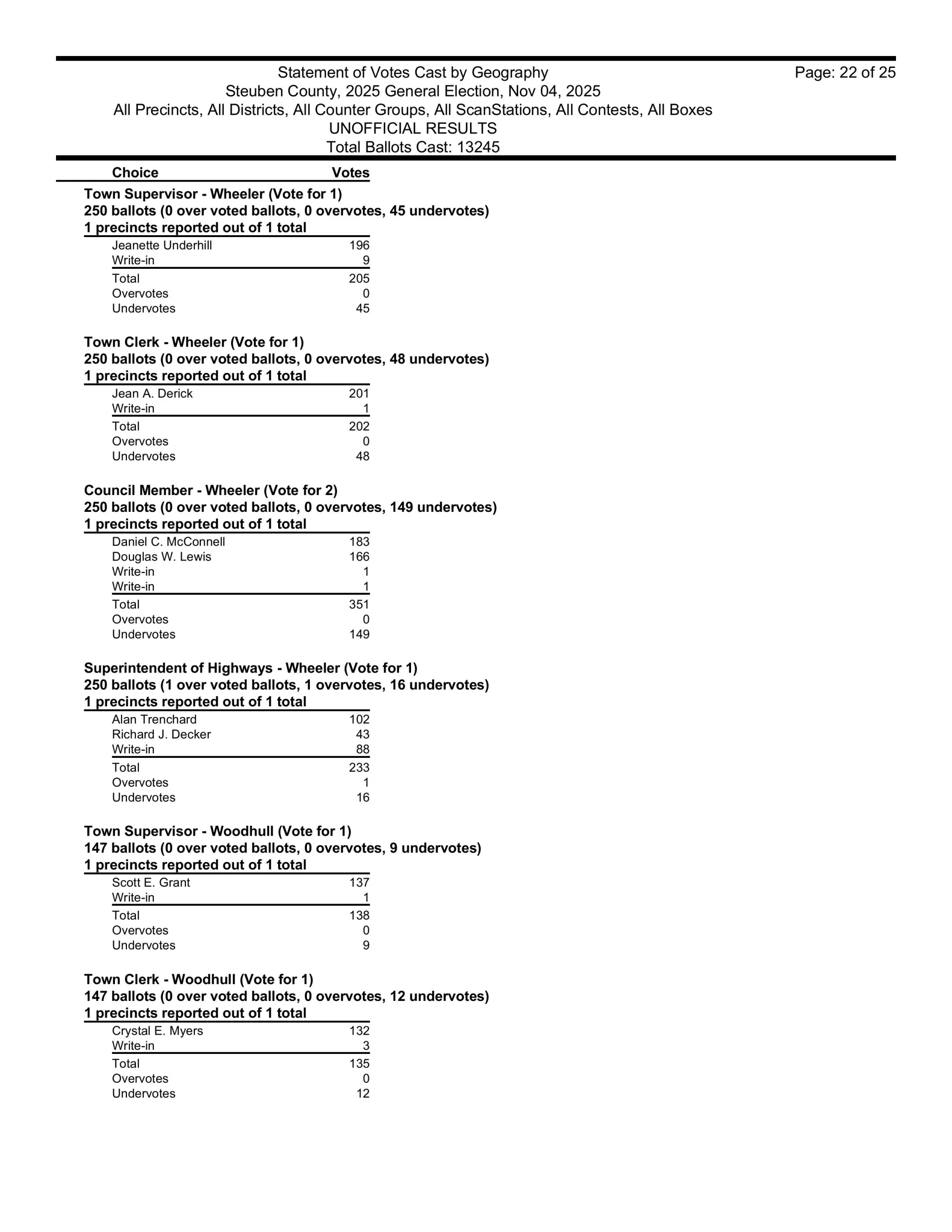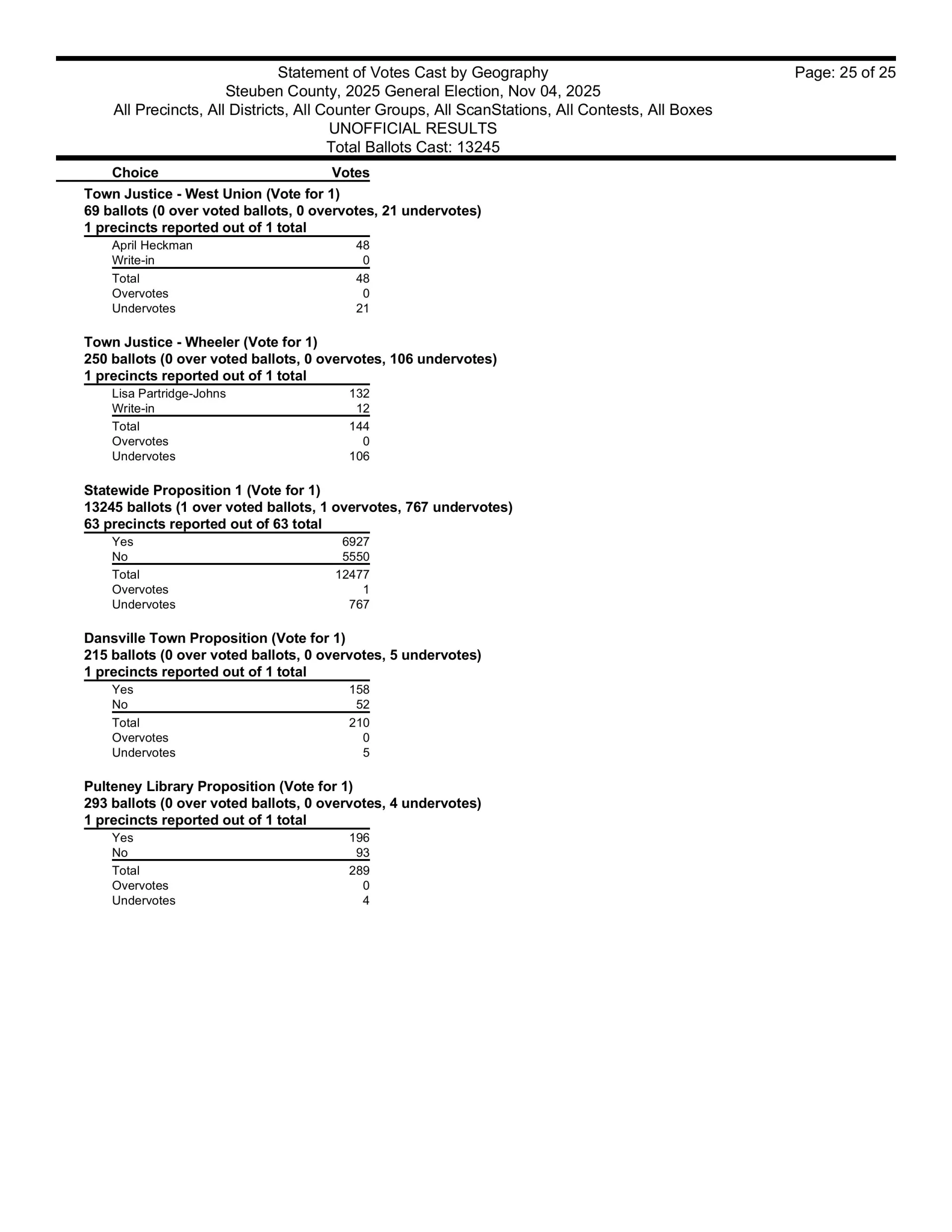 There are also races in Campbell, Caton, Cohocton, Corning, Howard, Erwin, Lindley, Wayne, Woodhull, Prattsburgh, Pulteney, Wheeler, Rathbone and Thurston.  Then, there are county legislative races in Bath, Prattsburgh, Pulteney, Urbana, Erwin, the Town of Corning, Caton and Hornby.