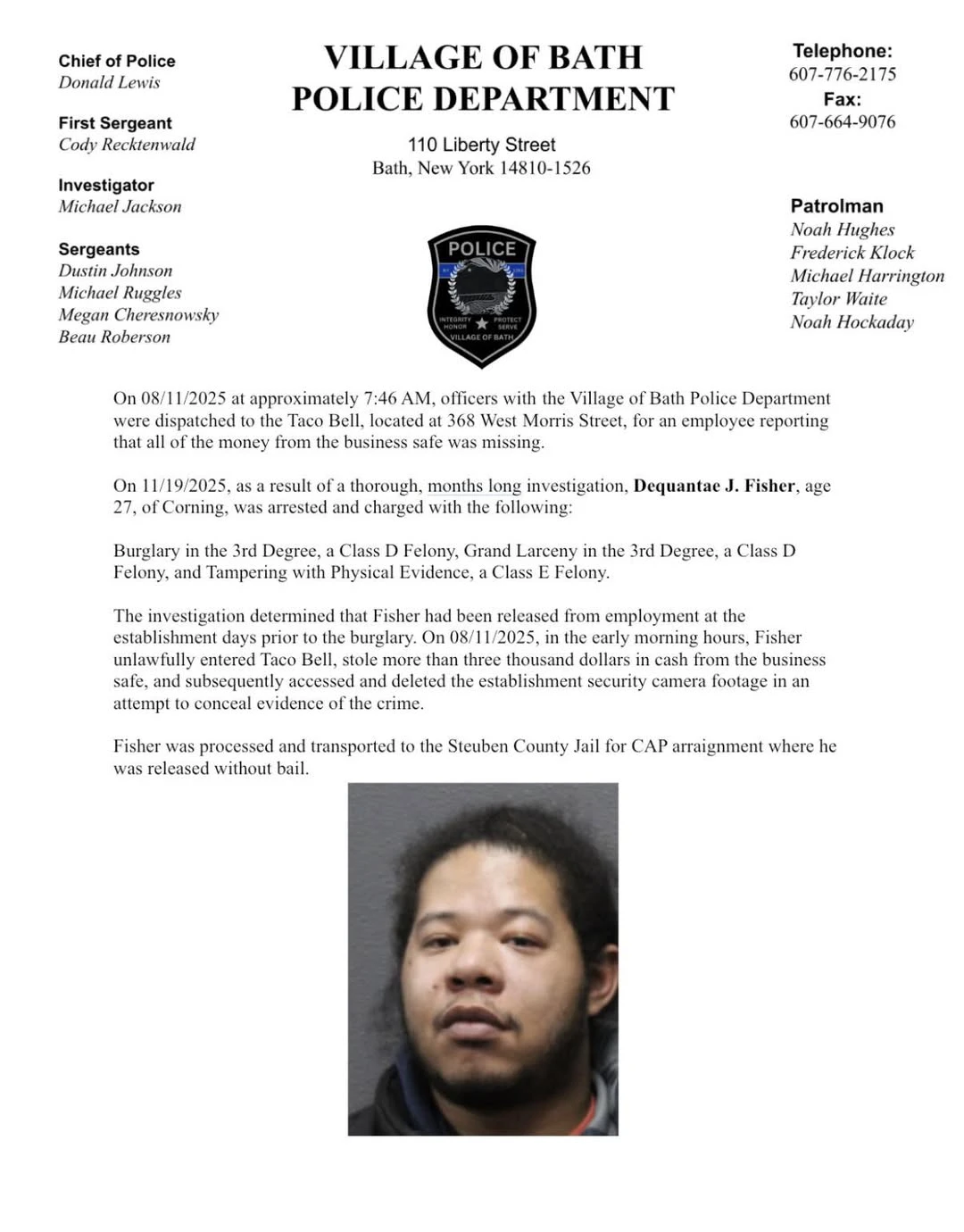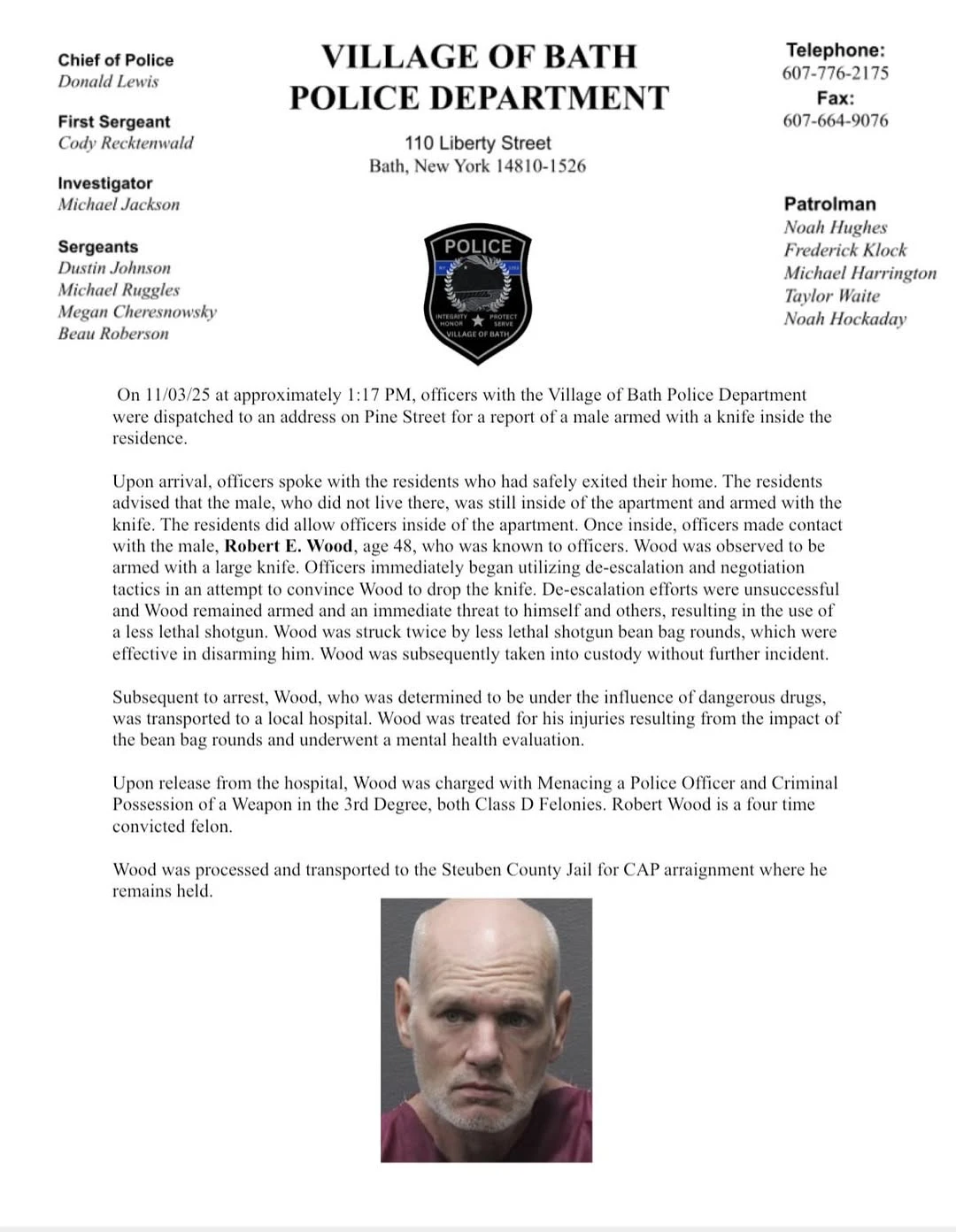 On October 31, 2025, New York State Parole Officers conducting a routine compliance visit at a residence on County Route 4 encountered escalating hostility from individuals on the property. Due to concerns for safety, the officers disengaged and reported the incident. The New York State Police Bureau of Criminal Investigation, along with Uniform Troopers, initiated a follow-up investigation.
