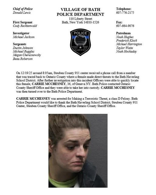 On New Years Eve and New Years Day, State Police, the Steuben County Sheriff’s Department, Bath Village Police, Hornell Police and other law enforcement agencies will be out late, patrolling to see if there are any impaired drivers.