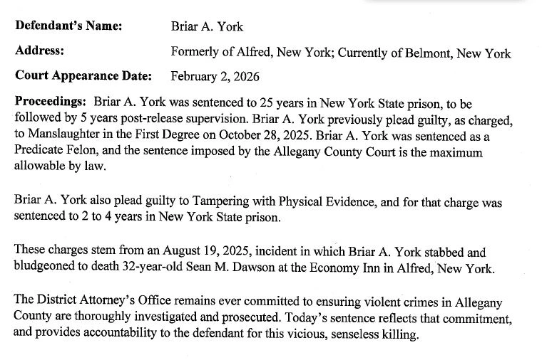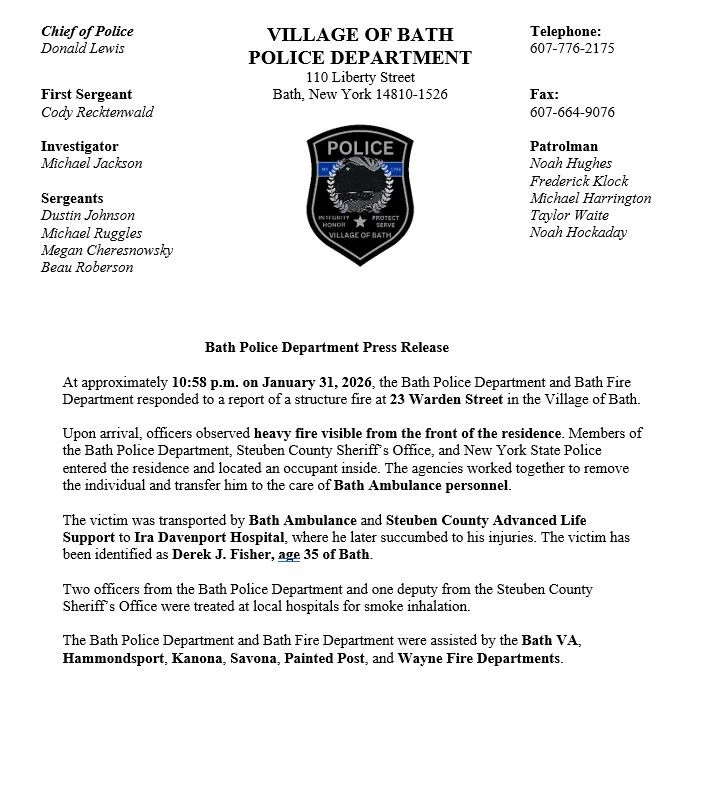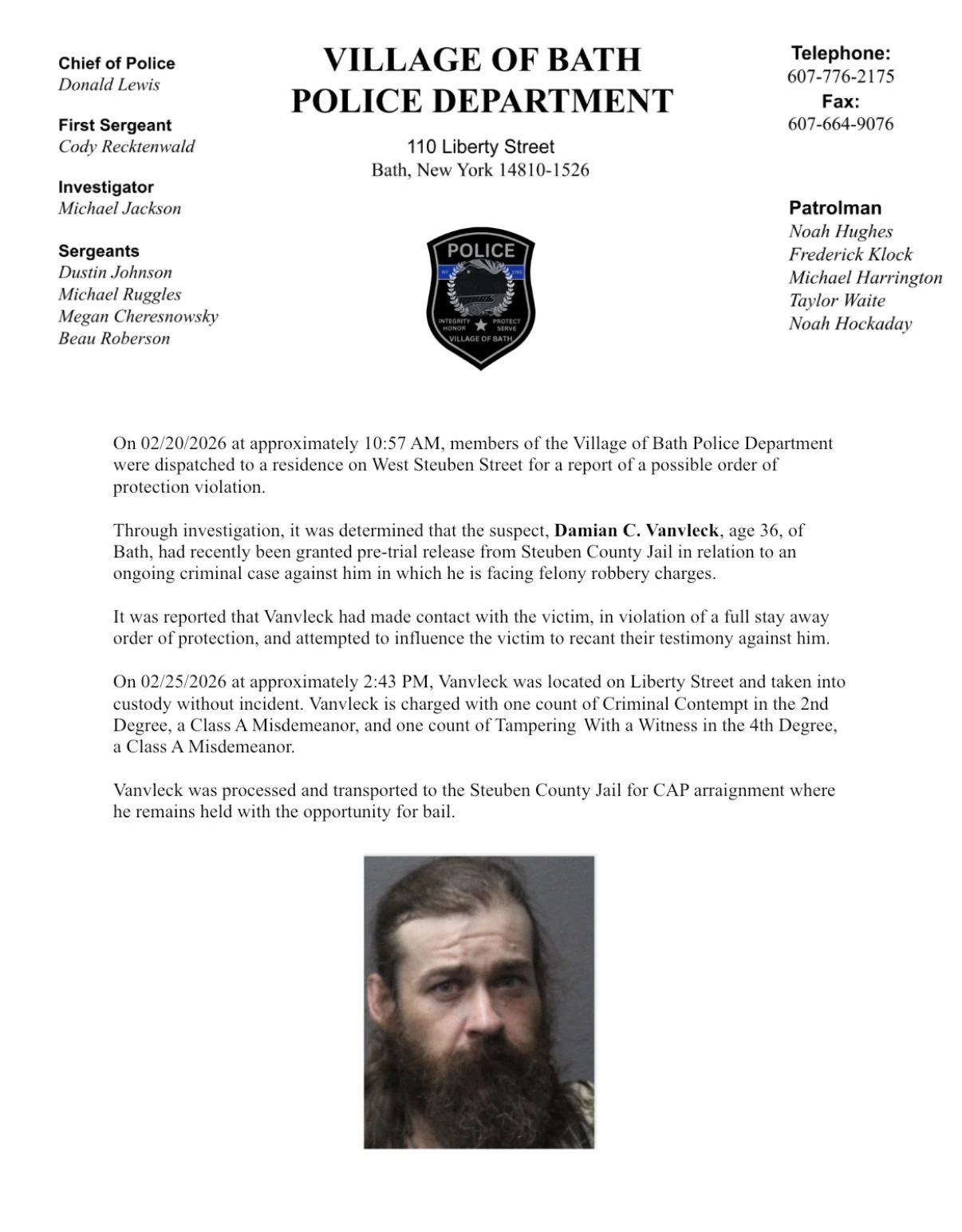 January brought another busy month for our agency. Sheriff Allard commended Deputy Ryan Andrews and Deputy Ethan Hurd for successfully disarming an alleged knife wielding suspect who attempted to stab Deputy Hurd in the face. We swore in two new Deputy Sheriffs, Deputy Spencer Gibson and Deputy Collin Hammond who are now attending the Southern Tier Law Enforcement Academy. Deputy Gibson is a former Steuben County 911 dispatcher and Deputy Hammond is a former Steuben County Correction Officer. Welcome Spencer and Collin! We also swore in two new Correction Officers, Officer Collin Cantrell was sworn in as a Provisional Full-time Correction Officer and Officer Steven Cantando was sworn in as Permanent Part-time Corrections Officers assigned to Court Security. Welcome Collin and Steven! Sergeant Shutt delivered over 100 donated coats and hats to area schools. Sergeants Ames, Erskine, Gardiner, Kester, Sciotti, Towner, Valentine and Waight completed the International Association of Chiefs of Police; The Emerging Leader training. Sergeants Ames and Waight completed the New York State Homeland Security and Emergency Services Fire Safety Inspections at Correctional Facilities Course. Captain Mills completed the National Command and Staff College MAGNUS Leadership Program. Sergeant Sorge and Deputy Butler taught another NYS Boater’s Safety Course, continuing our monthly presentation of this course. Investigators Day, Shepherd and Dininny completed the NYS DCJS Background Investigations Course. Sheriff Allard attended the NYS Sheriff’s Association Winter Training Conference, with classes on AI, the Dark Web, Border Security and Financial Crimes. Sheriff Allard was also honored to be the emcee at the annual awards ceremony as Chair of the NYS Sheriff’s Institute.