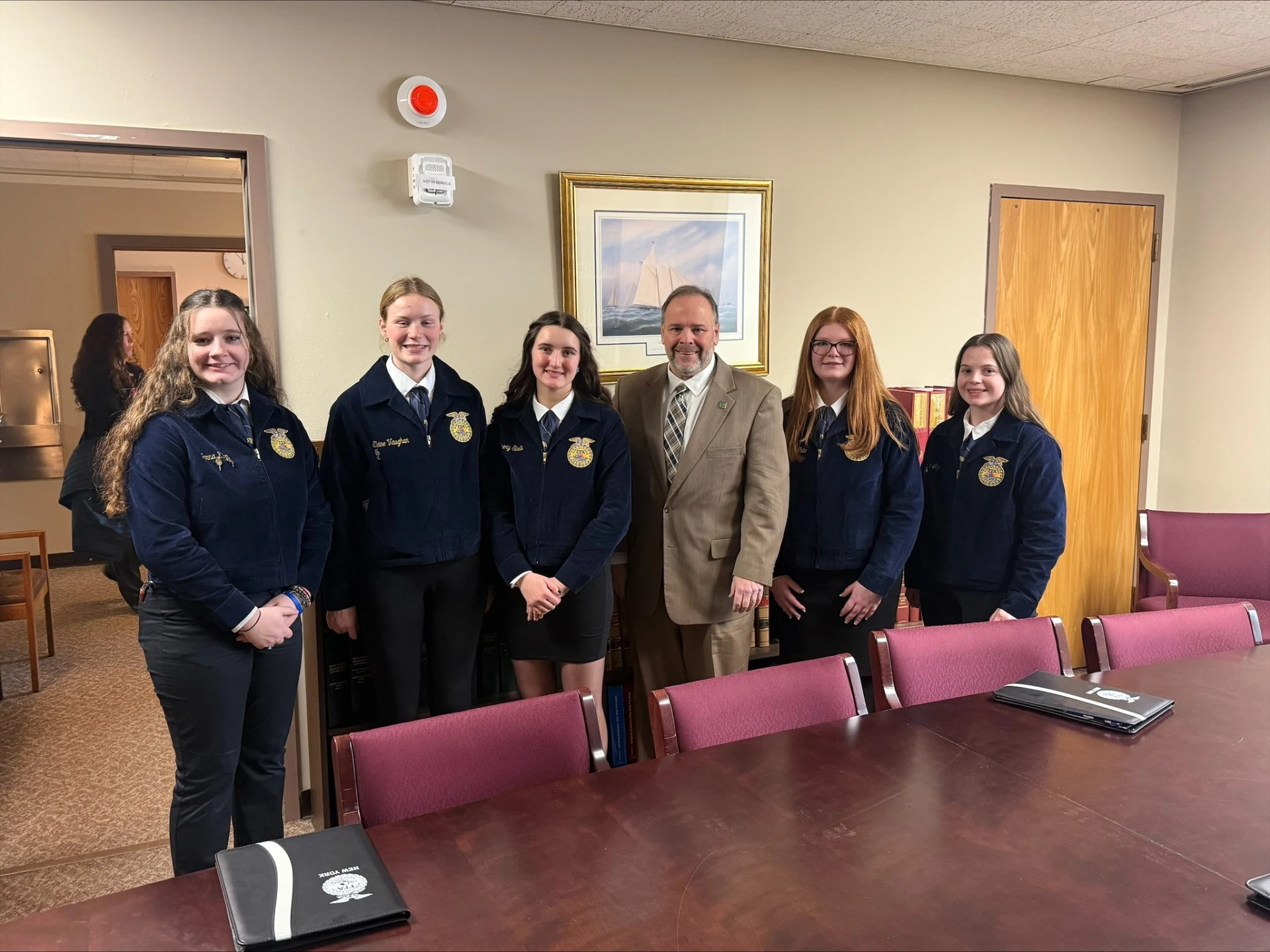 Assemblyman Phil Palmesano (R,C-Corning) recently met with Future Farmers of America (FFA) students to support agriculture and farming into the future. Pictured from left to right are Jenna Kuhn, Elaine Vaughn, Emery Sirkin, Assemblyman Palmesano, Emma Mae White and Ava Gage.